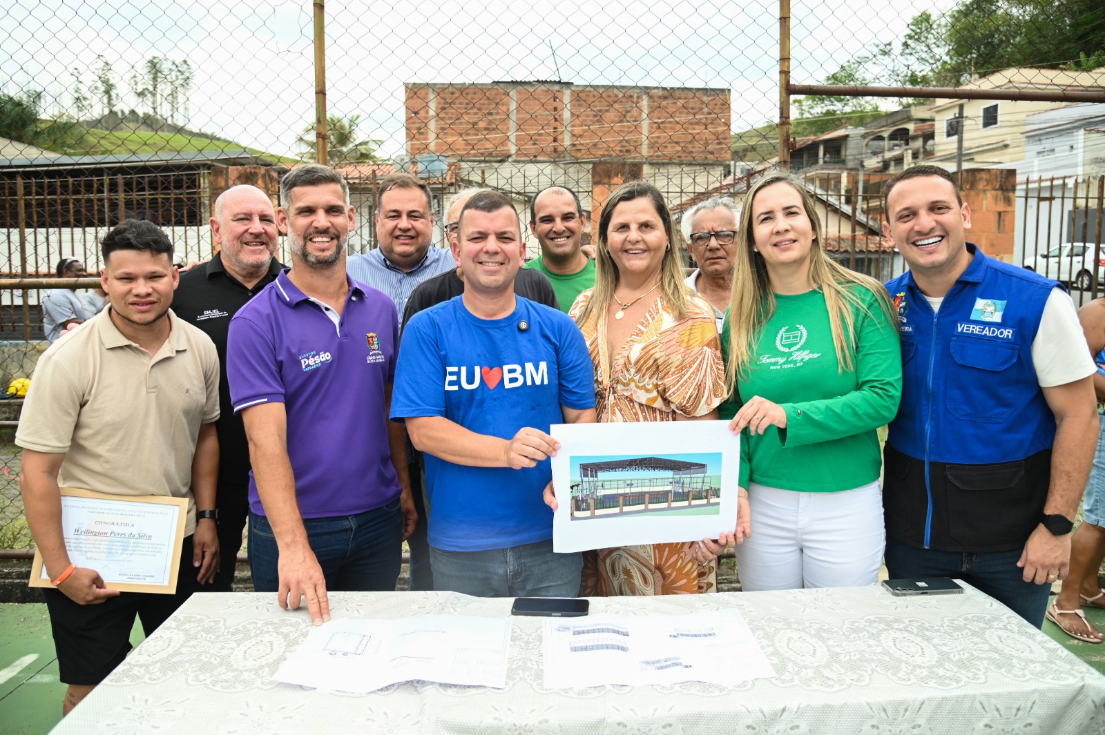 Também estiveram presentes na assinatura da ordem de serviço os secretários Mário Jorge (Esporte), Eros dos Santos (Planejamento Urbano) e Diego Raffide (Comunicação); o líder comunitário Osmar; e os vereadores Everton Pésão, Paulo Chuchu e Bruno Oliveira.