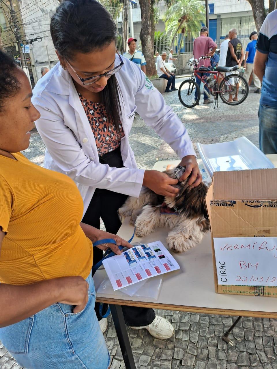 Os pets que estavam presentes foram avaliados pela equipe técnica e receberam vermífugo no local. Aqueles que não puderam levar seus animais foram orientados sobre a administração do medicamento e levaram para casa a medicação necessária.