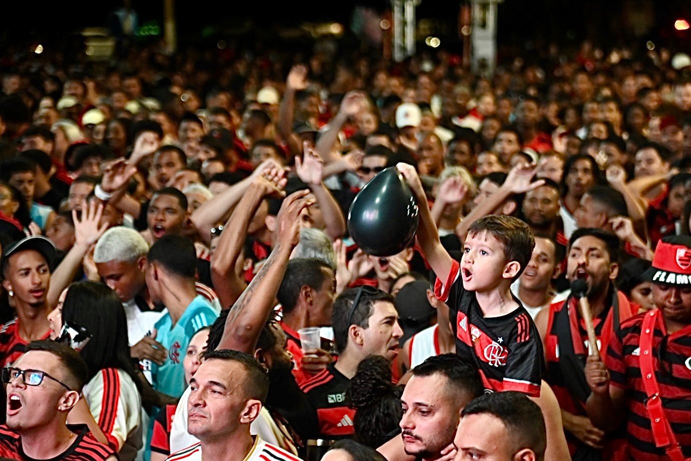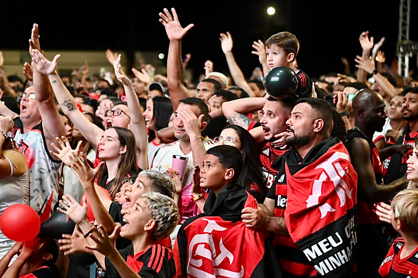 Um mar de gente tomou conta do Parque da Cidade neste sábado (29). Com segurança reforçada pela Guarda Municipal e Polícia Militar, cerca de 12 mil rubro-negros foram ao local manifestar força, paixão e muita vibração até celebrarem o tão sonhado tetracampeonato do Flamengo na Libertadores. Com gol de Danilo, o Mengão venceu o Palmeiras no Estádio Monumental, em Lima, no Peru, e fez história mais uma vez. E mesmo a quase 3,8 mil quilômetros de distância, os barra-mansenses vibraram como se estivessem no estádio, bem pertinho do clube do coração.