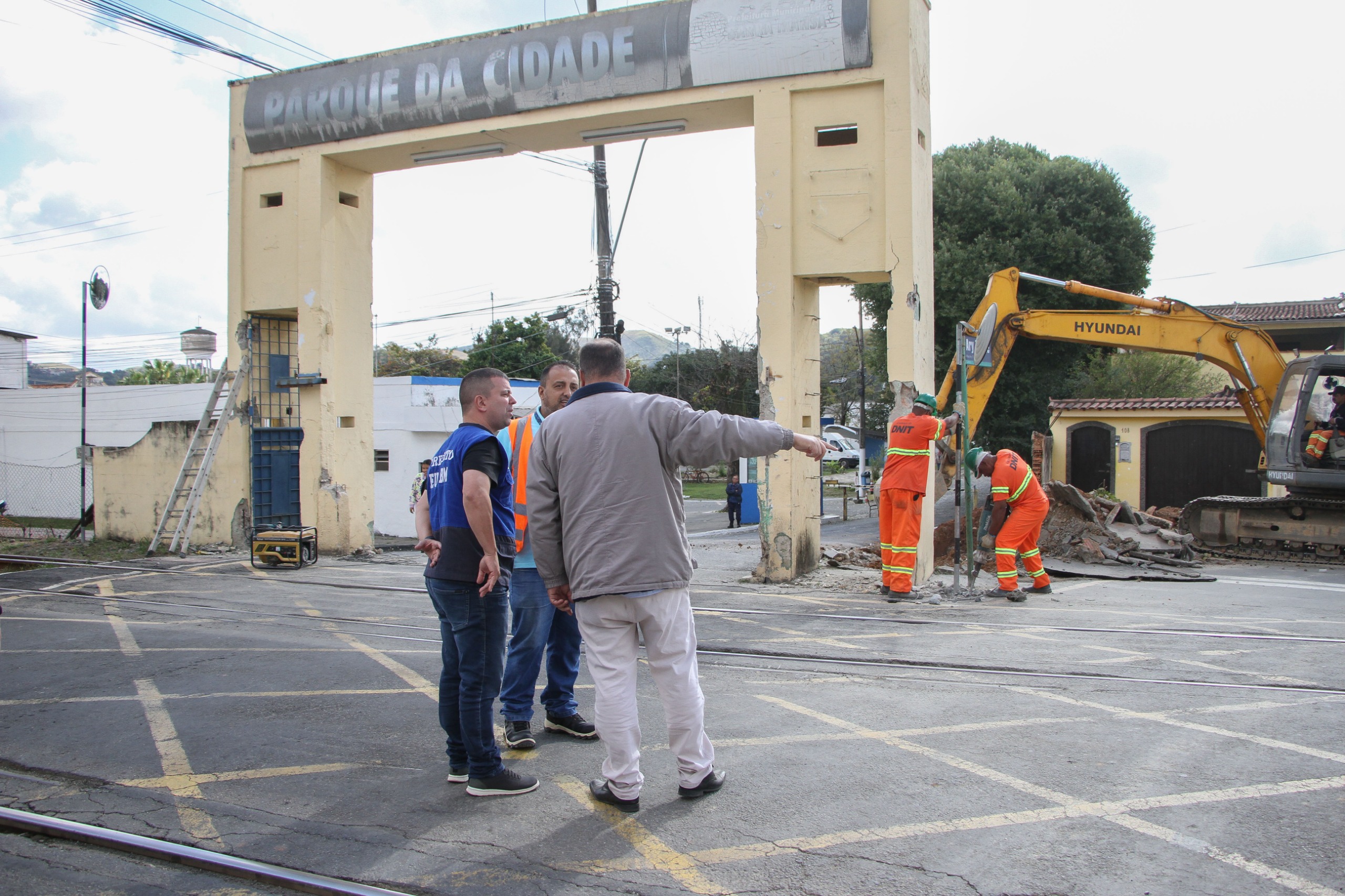 Com foco na transformação da infraestrutura e da mobilidade na região central de Barra Mansa, as obras do Pátio de Manobras estão avançando significativamente. Durante a manhã desta terça-feira (12), o prefeito Luiz Furlani e o secretário de Planejamento Urbano, Eros dos Santos, acompanharam a demolição de um muro e do pórtico na área em frente ao Parque da Cidade.
