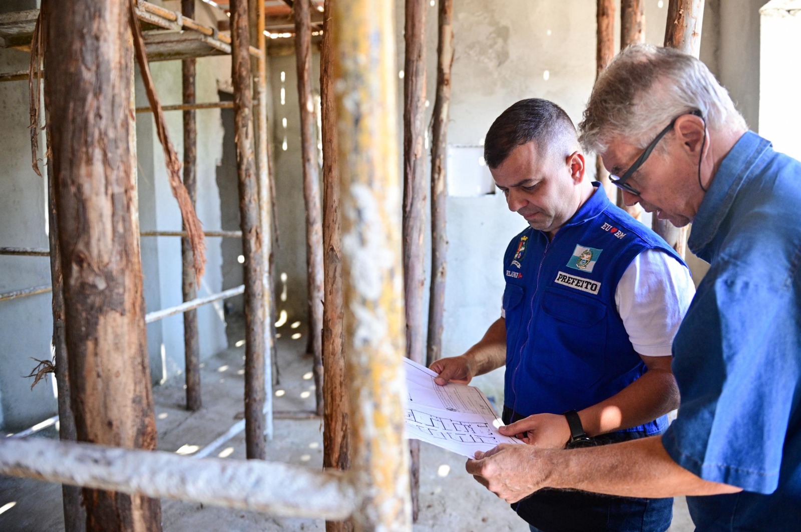 Prefeito Furlani acompanhou o andamento dos trabalhos nesta quarta-feira, dia 09, quando laje do local foi concretada